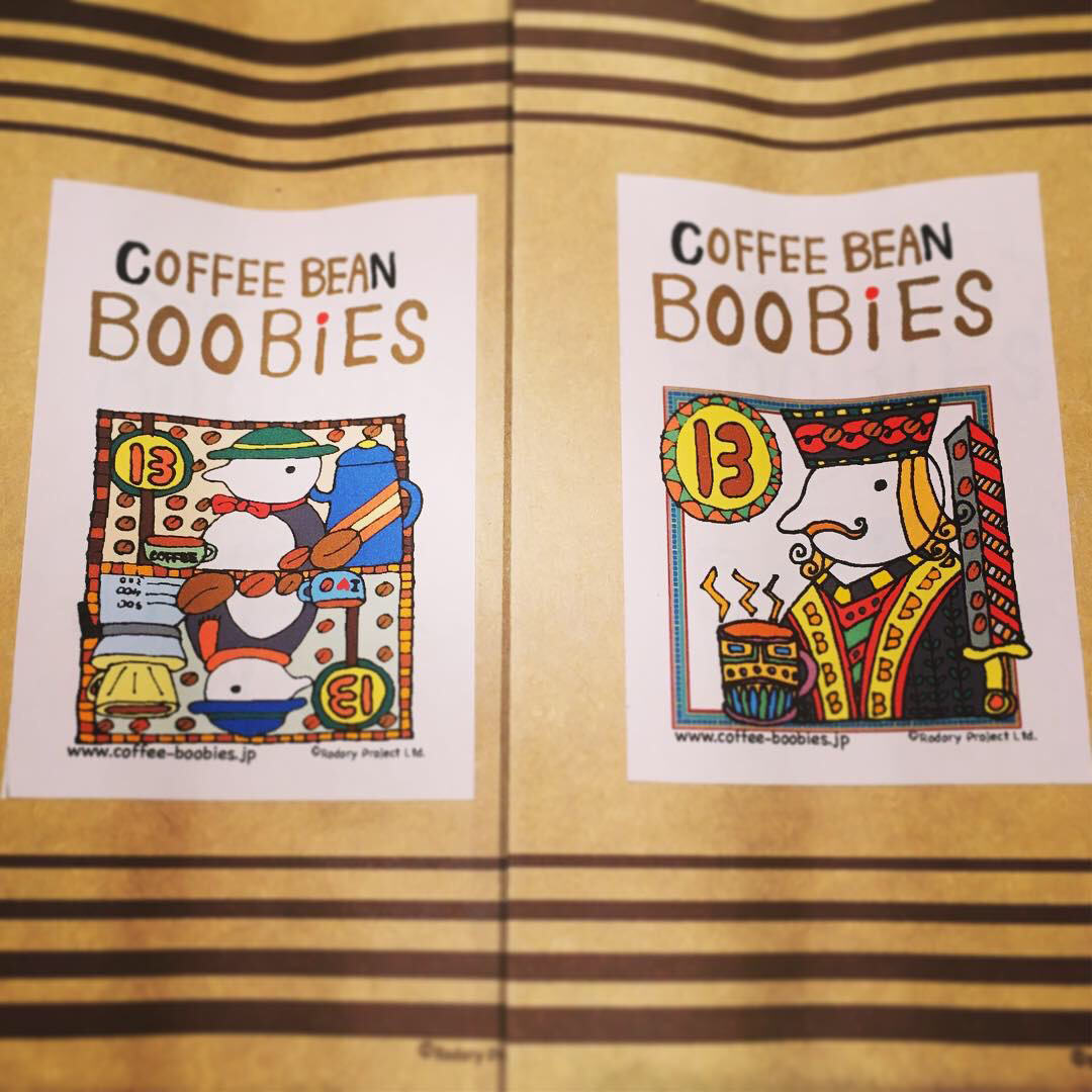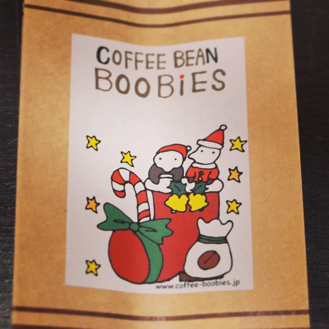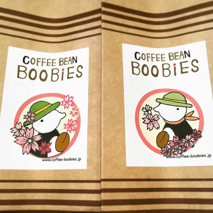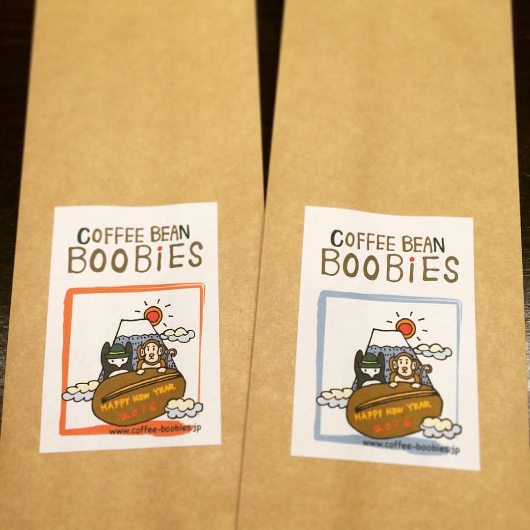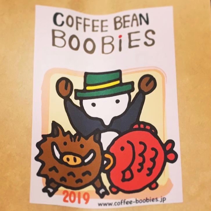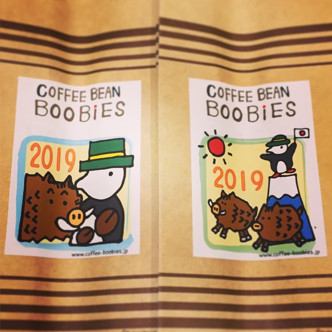 ブービーズではお買い上げいただいた珈琲豆を入れる袋にオリジナルのラベルを使用しています。通常はシンプルなラベル を使用していますが、時々期間限定で特別ラベルを作成、使用しています。
