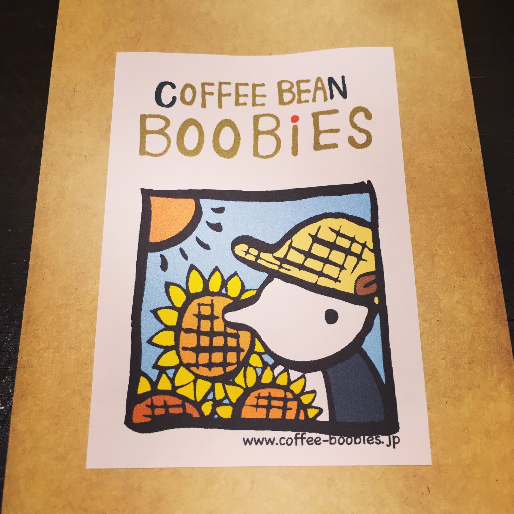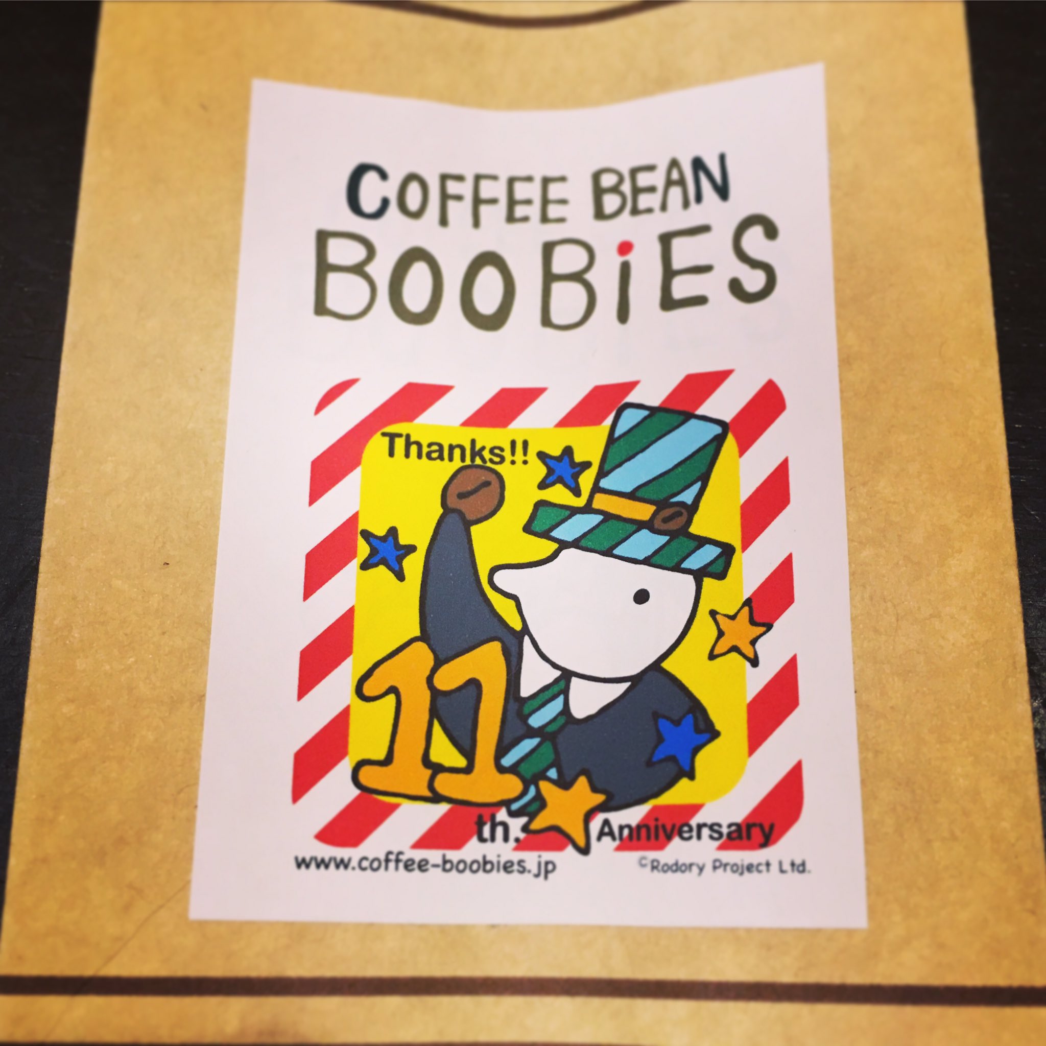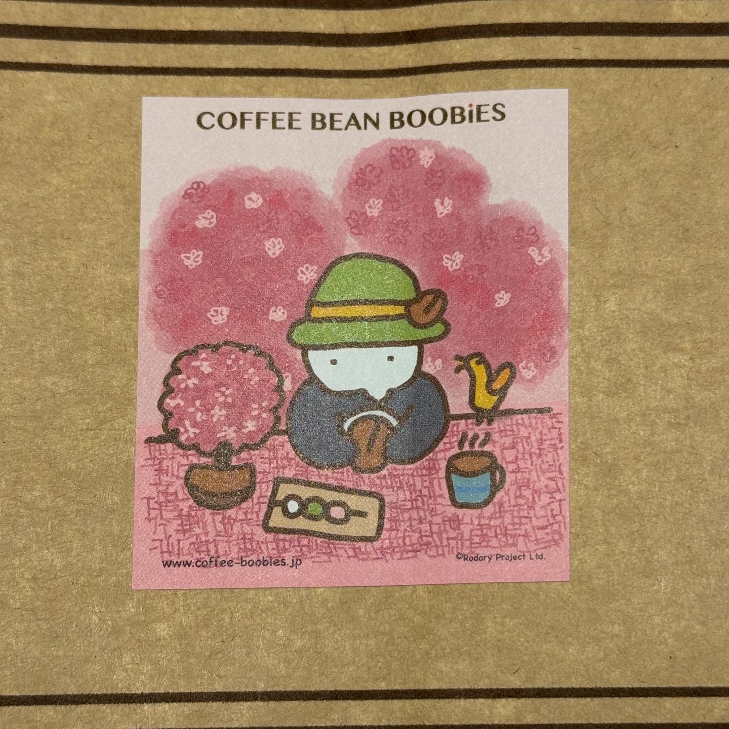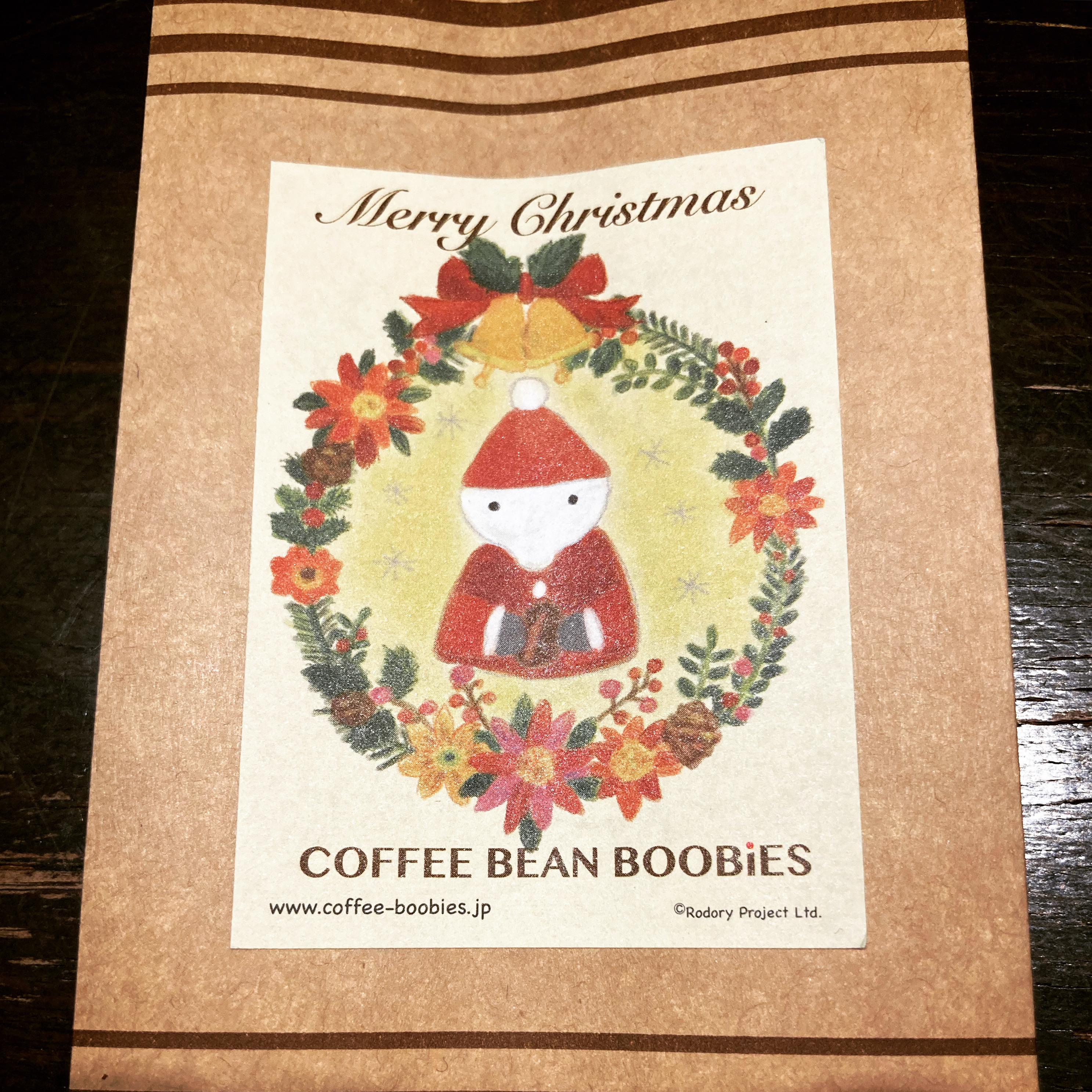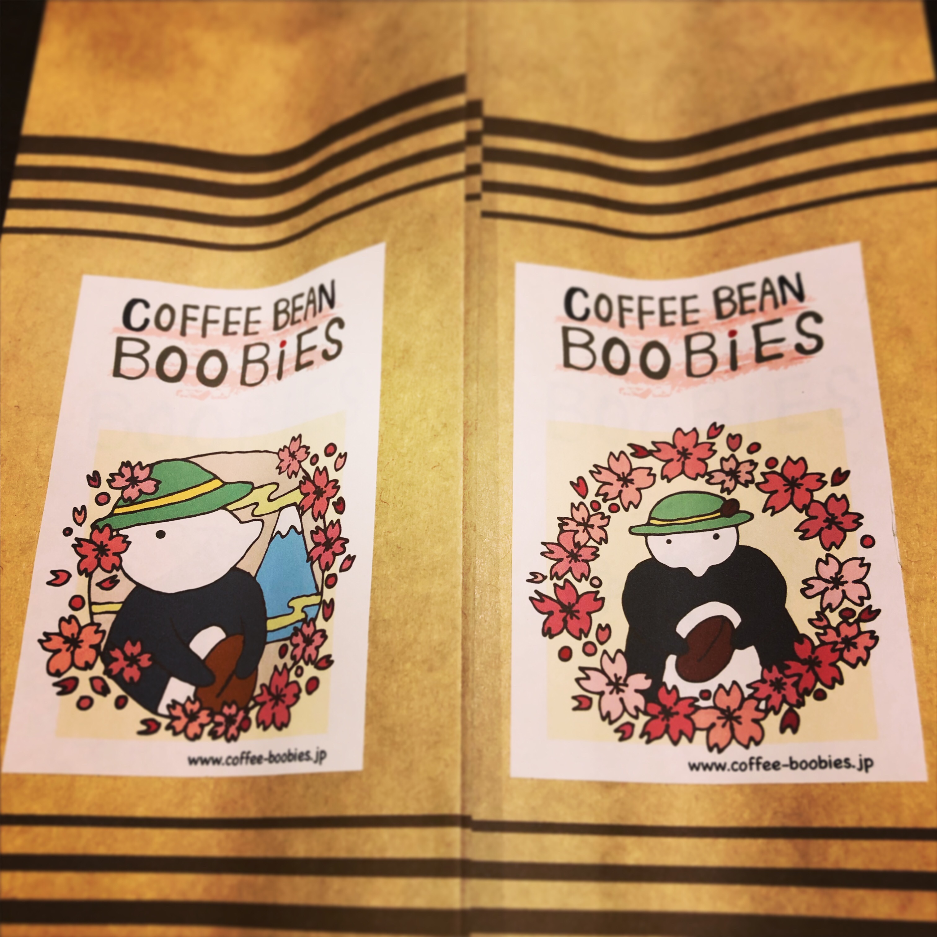 ブービーズではお買い上げいただいた珈琲豆を入れる袋にオリジナルのラベルを使用しています。通常はシンプルなラベル を使用していますが、時々期間限定で特別ラベルを作成、使用しています。