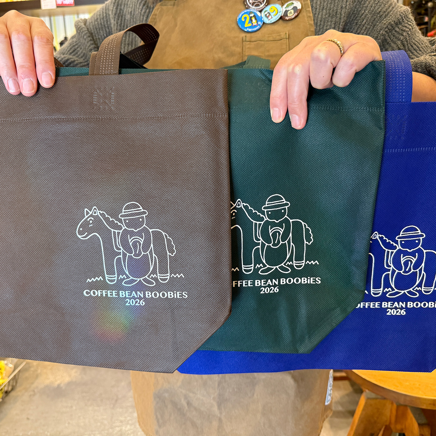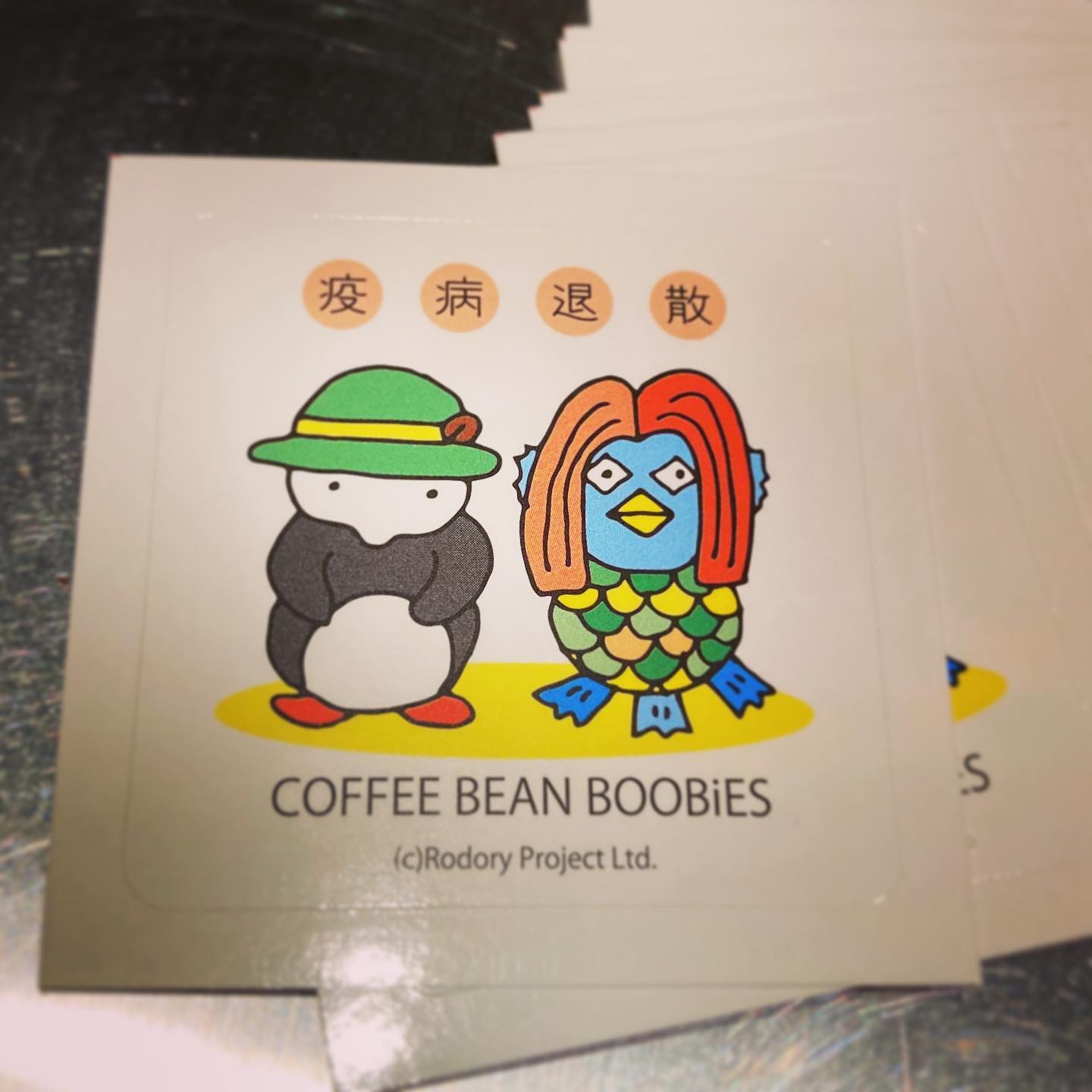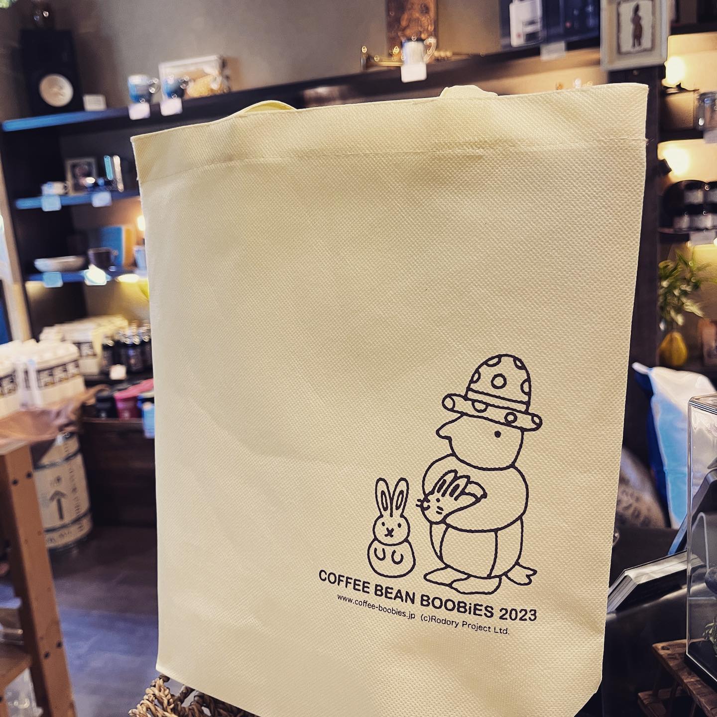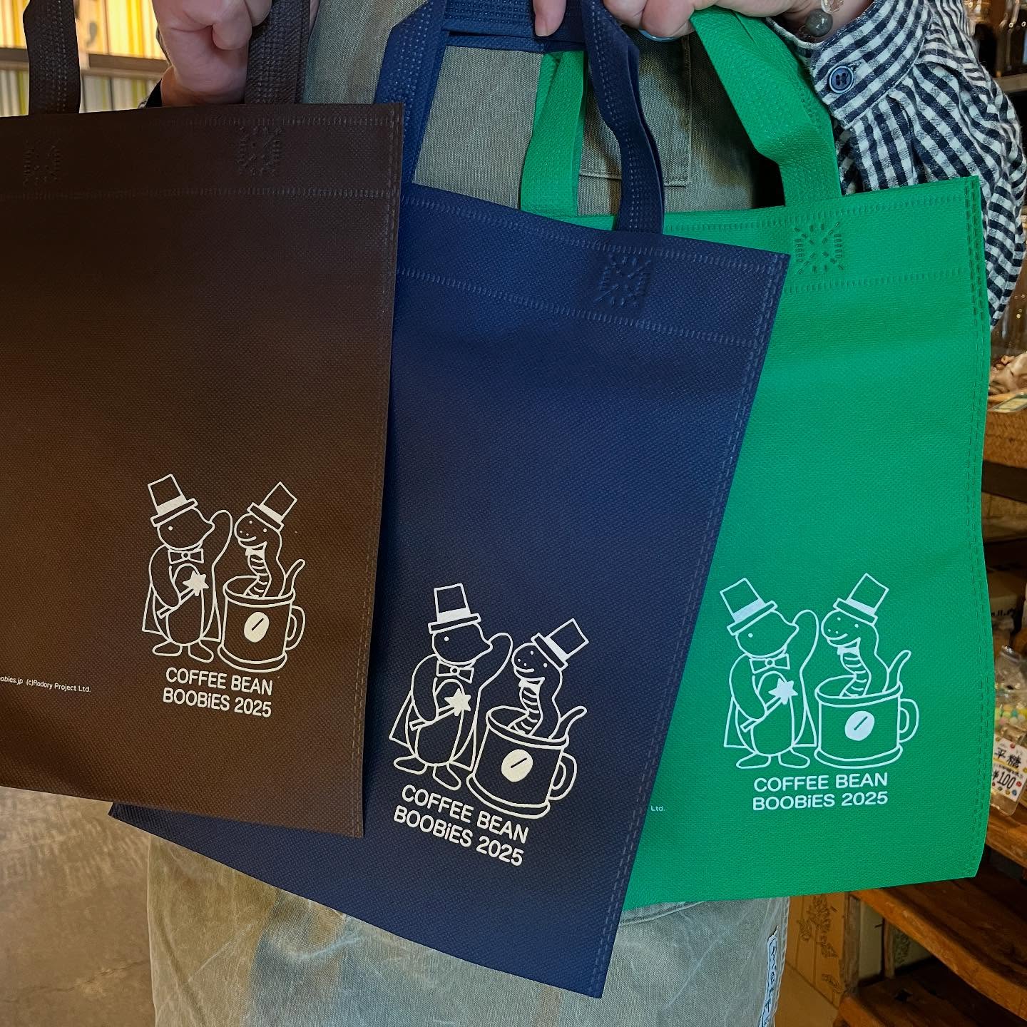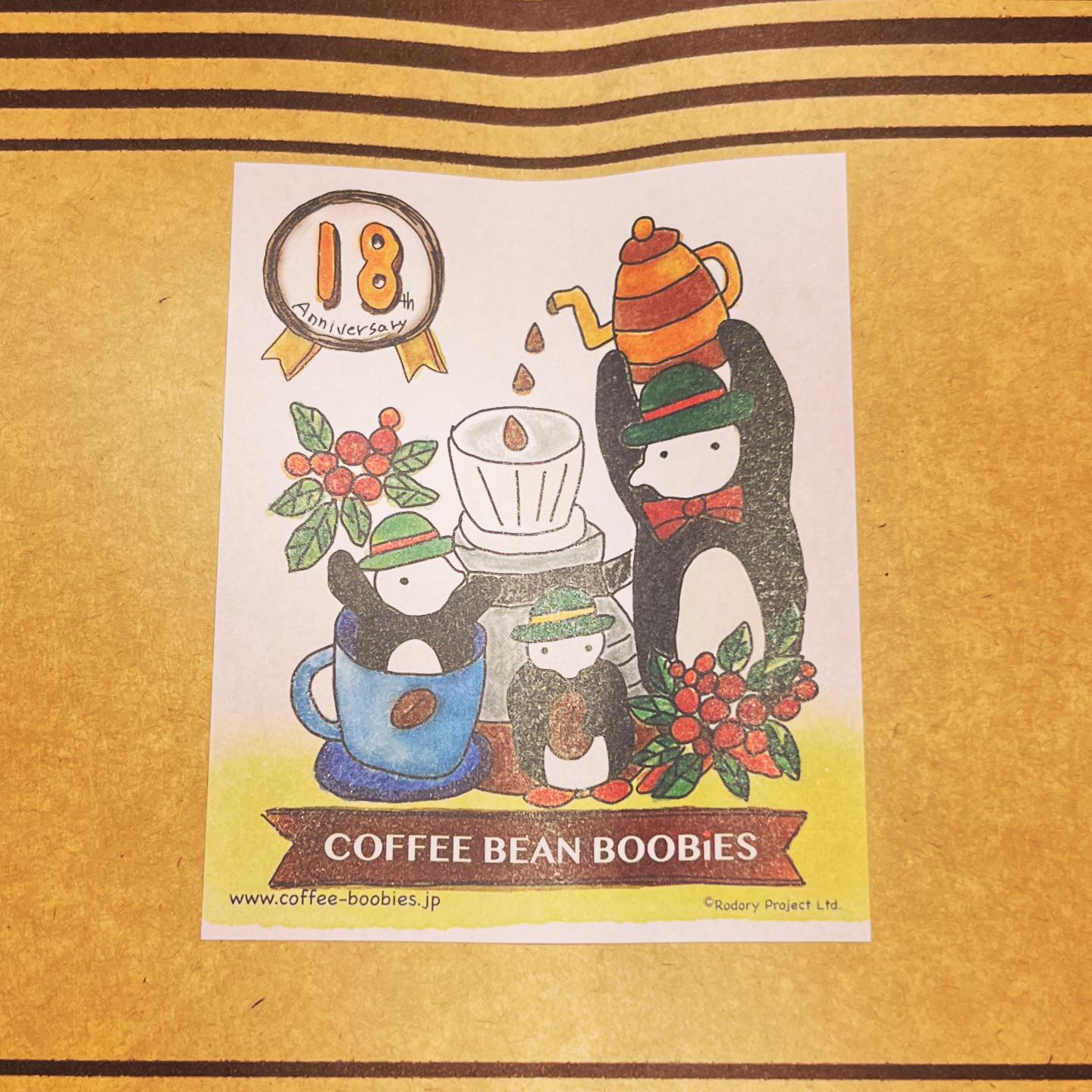 ブービーズではお買い上げいただいた珈琲豆を入れる袋にオリジナルのラベルを使用しています。通常はシンプルなラベル を使用していますが、時々期間限定で特別ラベルを作成、使用しています。